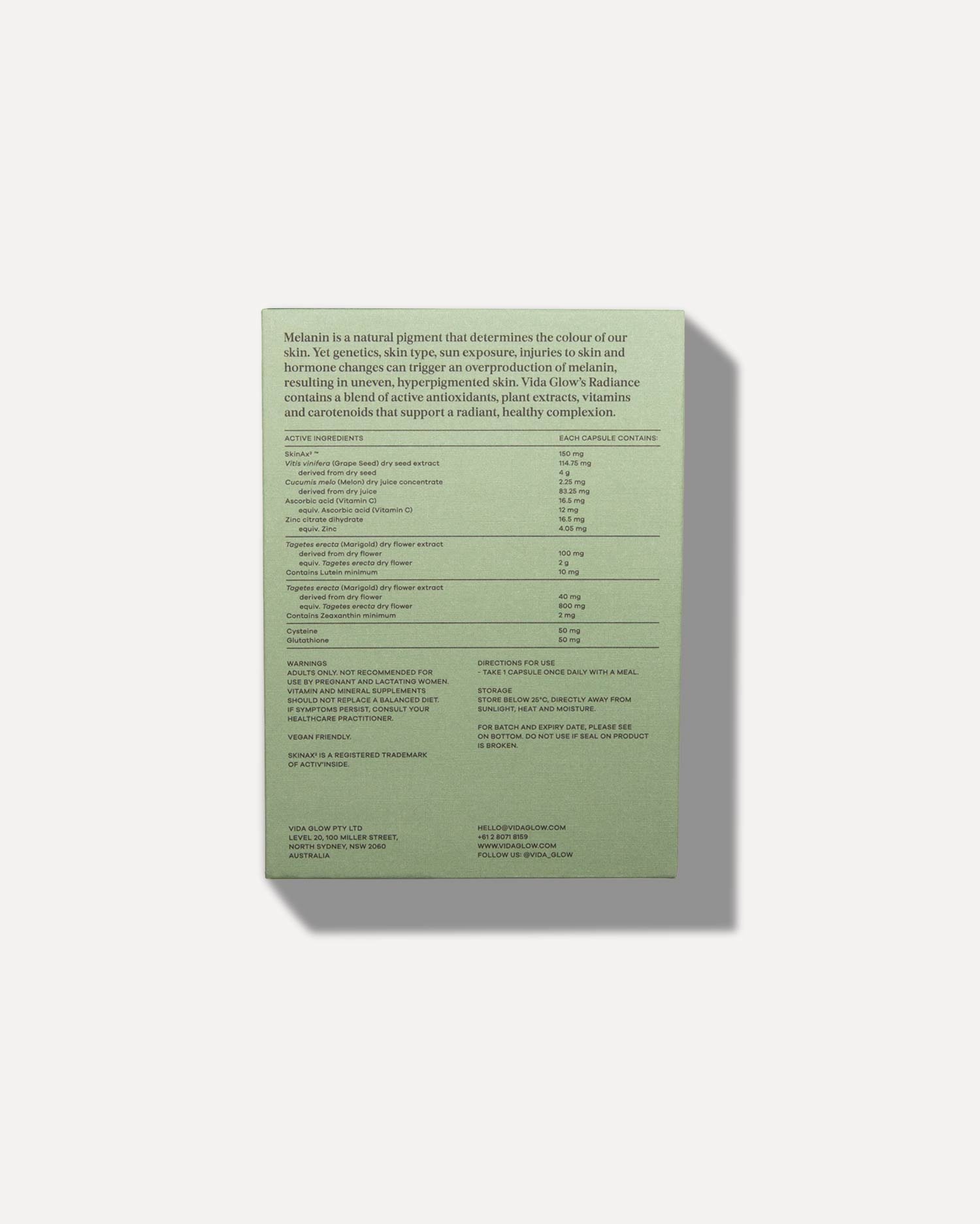 Brighten. Improve. Illuminate. As part of your daily routine, Radiance delivers overall skin tone perfection by increasing luminosity and reducing dark spots and discolouration on the complexion.